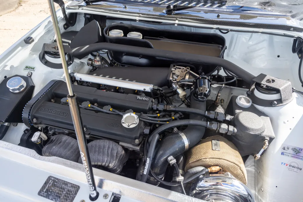 The car initially remained relatively standard for several years before modifications began. The first significant upgrade involved a fifth injector setup on the original 1.9-litre CVH engine, boosting output to approximately 230bhp. After experiencing engine failure during straight-line testing, Chris made the pivotal decision to transition to a 2.0-litre turbocharged Zetec blacktop engine - a move that would fundamentally transform the vehicle's character and performance.