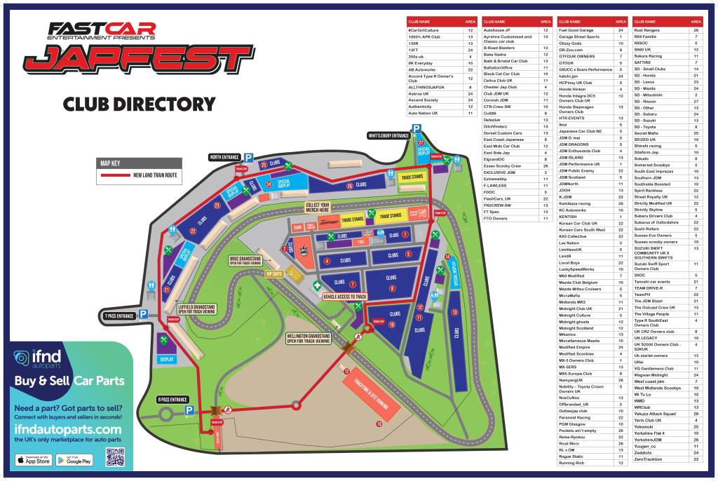 For 2025, Japfest introduces two DJs providing musical entertainment across the venue, plus the Japfest "Bullet" Land Train to help visitors navigate the extensive showground. Public track time sessions offer enthusiasts the rare opportunity to drive on the iconic Silverstone circuit.