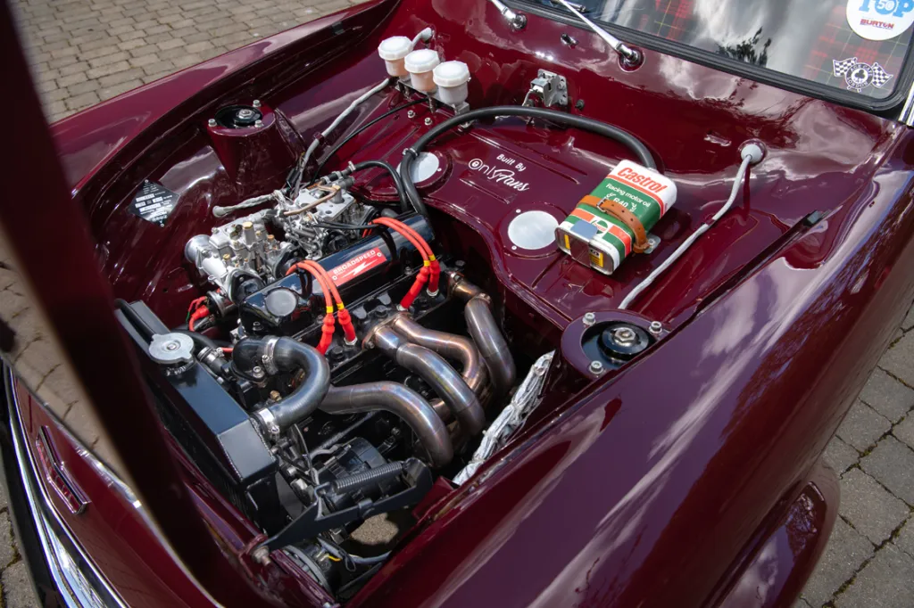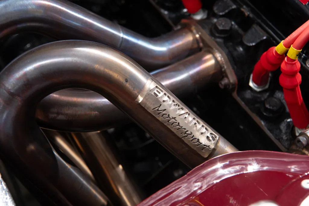 Installing a crossflow into the Anglia's compact engine bay presented significant challenges. The handcrafted exhaust manifold represents a particularly clever solution to space constraints, while the dry sump conversion allows the engine to sit considerably lower, improving both ground clearance and centre of gravity. With merely 15mm separating the sump and steering rack, the packaging achievement becomes truly impressive.
